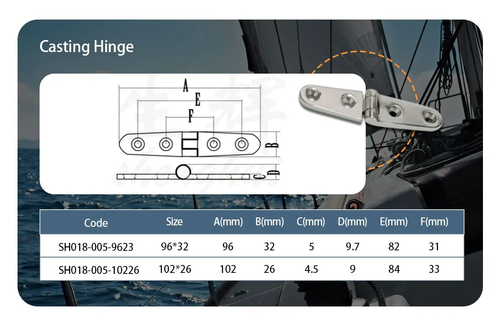 Aço Inoxidável Grau Marinho 316 Barco Fundido Dobradiça Pesada de Porta em Cinta Ferragens Marítimas Dobradiça em T |